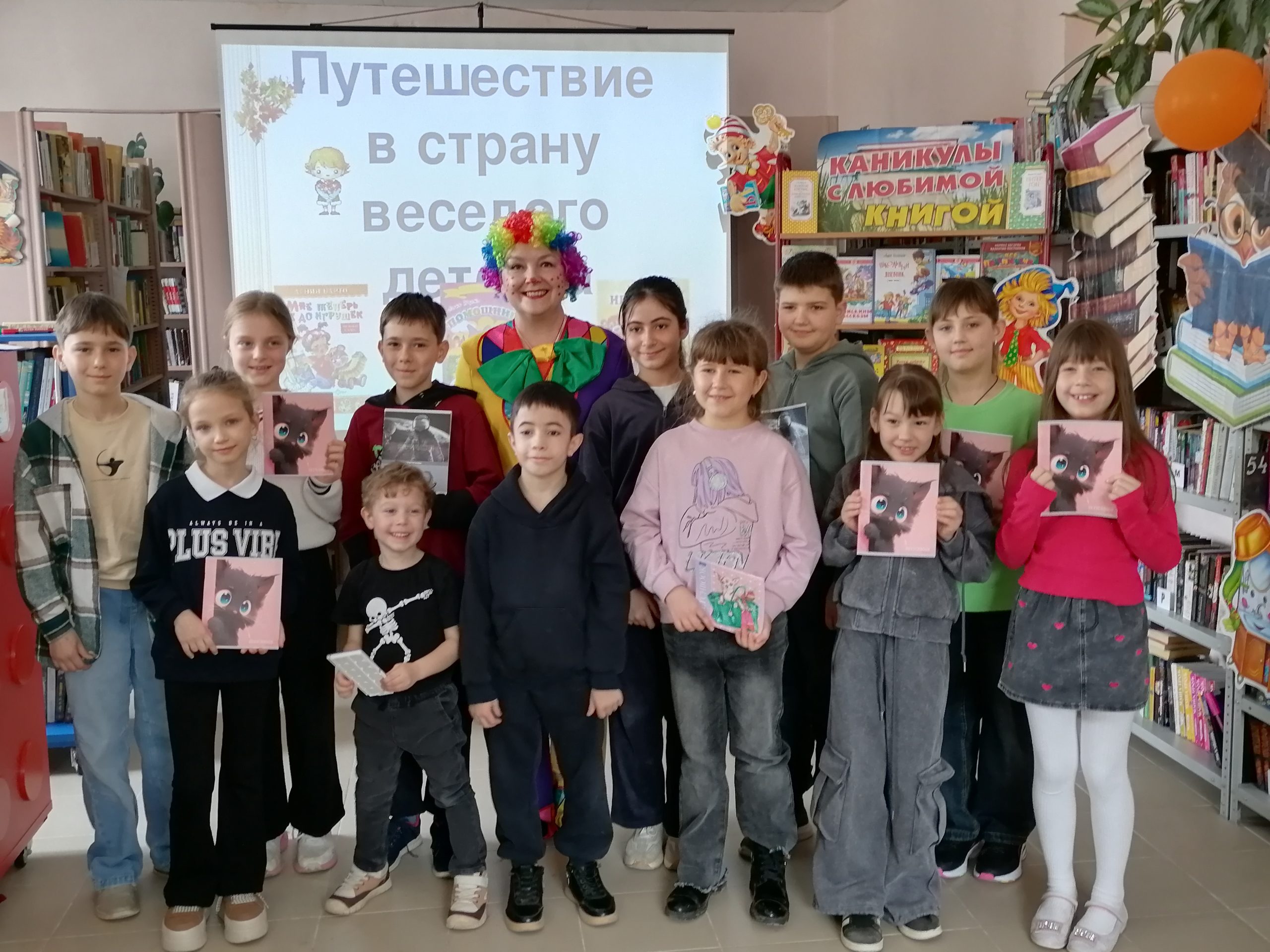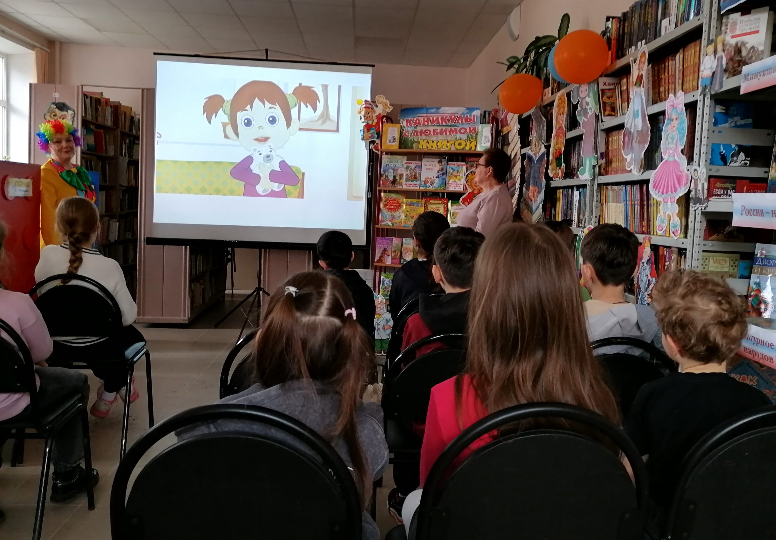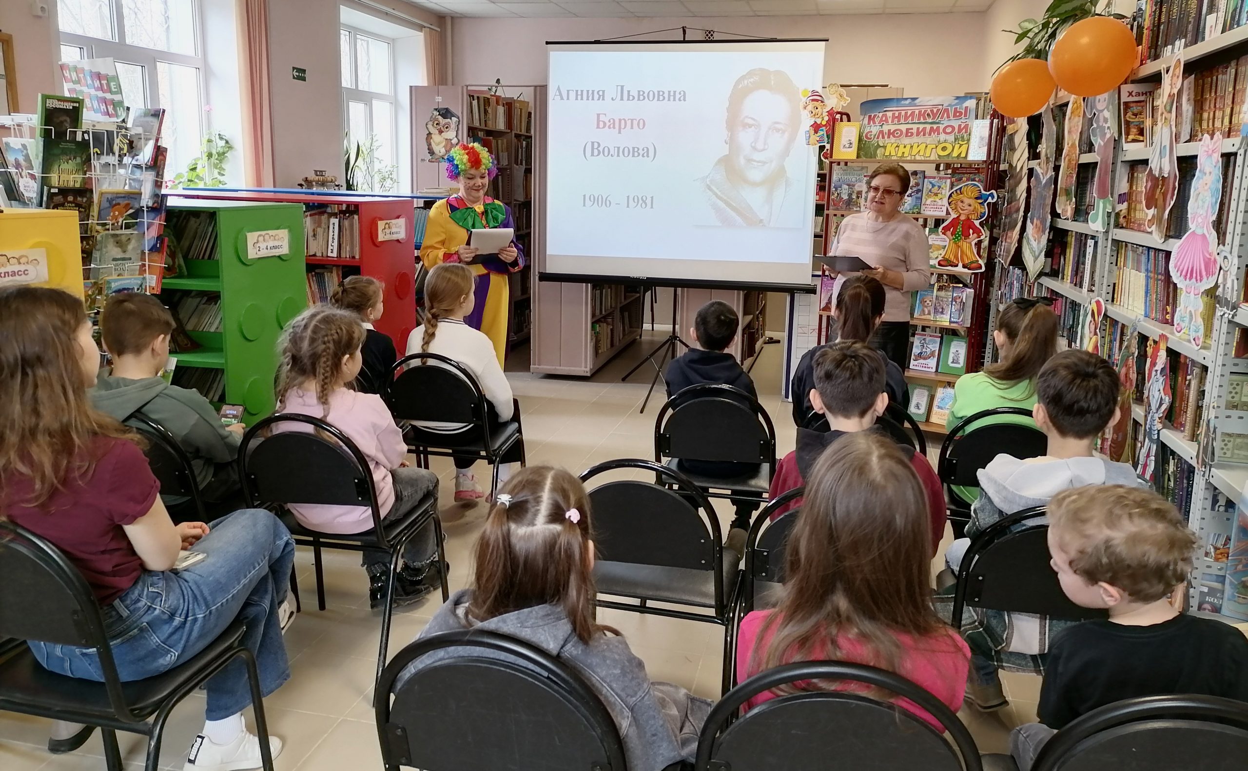 Но на этом приключения не закончились! Вместе с Клоуном дети разгадывали загадки-кроссворды, участвовали в интерактивной викторине, читали вслух любимые стихотворения и делали весёлую физкультминутку. А в завершение праздника все вместе посмотрели мультфильмы, снятые по стихам А. Барто и спели задорную песенку «Любитель-рыболов».